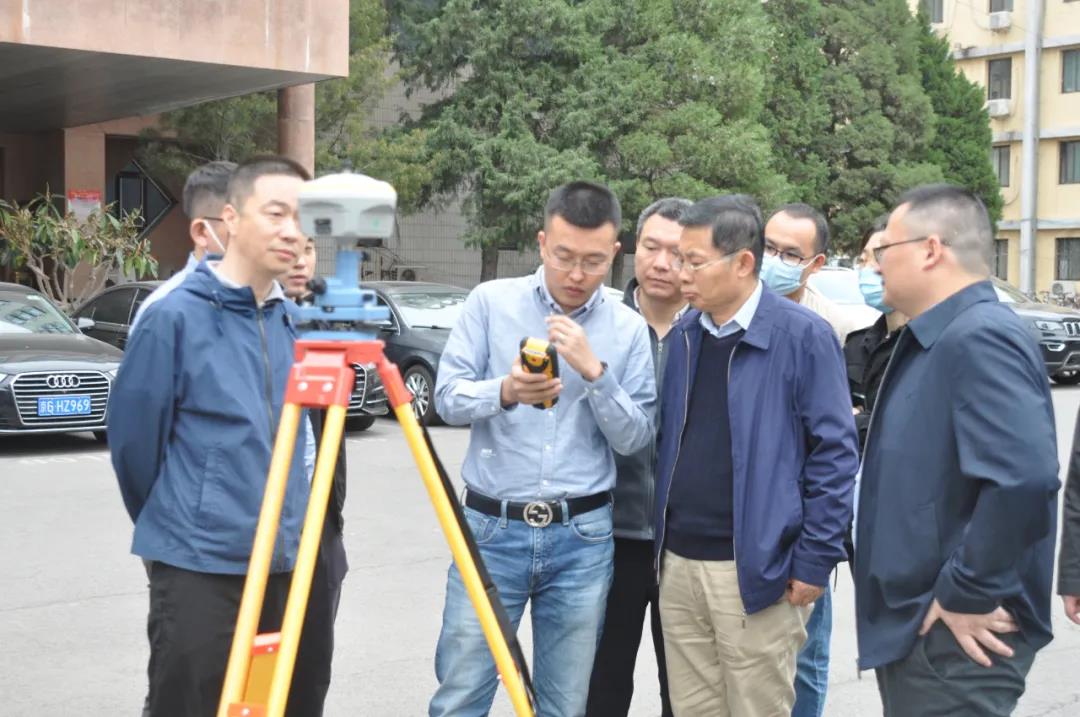 楊元喜院士觀摩北斗精度終端的戶外實測演示